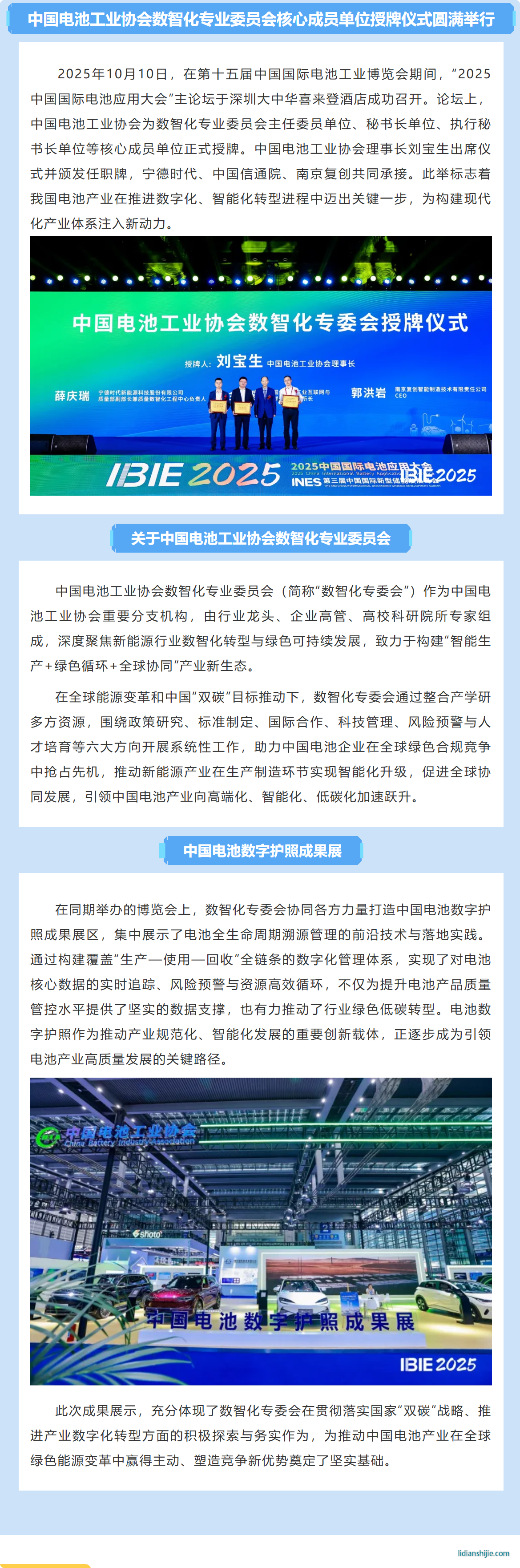 中國電池工業(yè)協(xié)會數(shù)智化專業(yè)委員會核心成員單位授牌儀式圓滿舉行